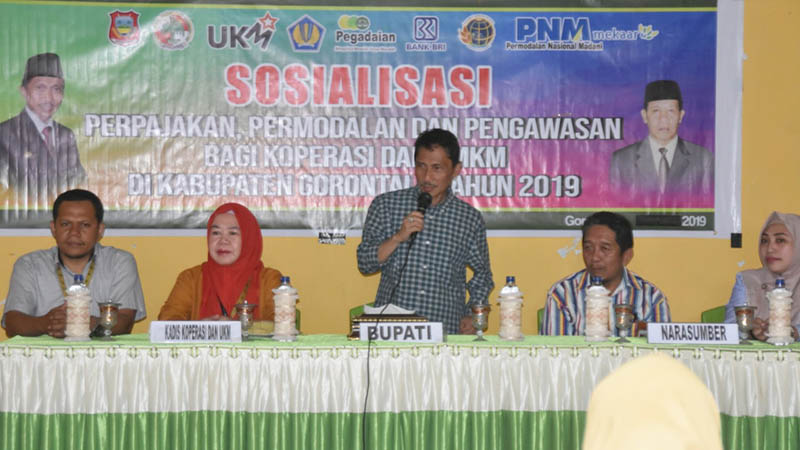 “Di Kabupaten Gorontalo hingga saat ini mengembangkan kurang lebih 39 ribu UMKM. Alhamndulillah di Kabupaten Gorontalo dalam rangka mengembangkan UMKM, pemerintah tidak hanya memberikan modal hingga berkembang, tapi juga bermitra dengan sumber-sumber keuangan. Sebut saja perbankan dan pegadaian,” ujar Bupati Nelson Pomalingo