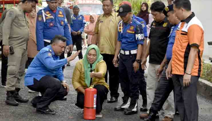 60DTK – Limboto : Bertempat di pelataran Rumah Dinas Bupati, Badan Penanggulangan Bencana Daerah (BPBD) Kabupaten Gorontalo bekerja sama dengan Pemadam Kebakaran (Damkar) daerah setempat, menggelar simulasi penanganan awal kebakaran, Jum’at (27/12/2019).