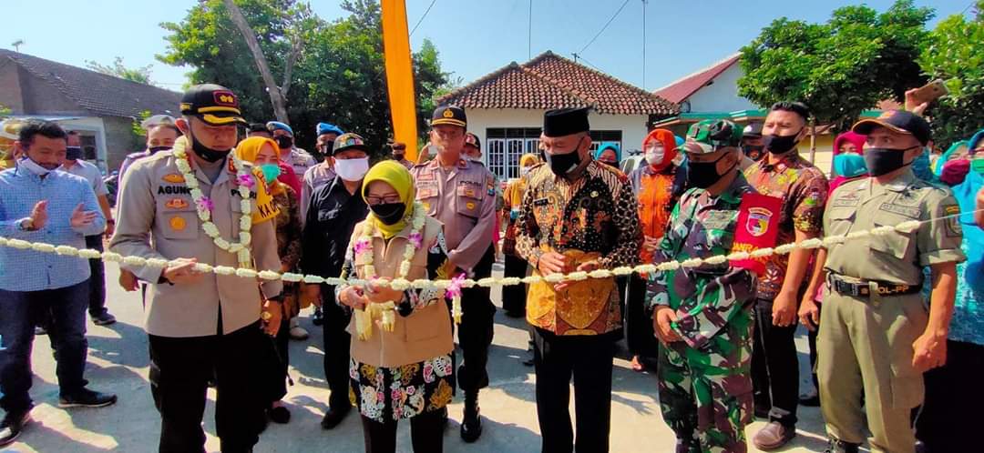 60DTK, Jombang – Bupati Jombang, Mundjidah Wahab, bersama Gugus Tugas Percepatan Penanganan Covid-19 mengunjungi Kampung Tangguh di Desa Sukorejo Perak dan meresmikan Kampung Tangguh Semeru di Dusun Wonorejo, Desa Sidowarek, Kecamatan Ngoro Kabupaten Jombang, Sabtu (27/6/2020).
