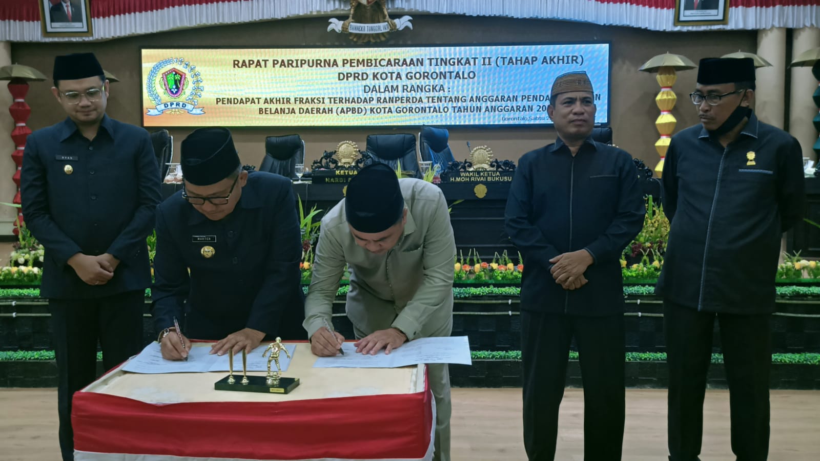 Pengesahan ranperda tersebut dilakukan oleh pihak DPRD bersama Pemerintah Kota (Pemkot) Gorontalo lewat rapat paripurna tingkat II yang berlangsung di Aula I Kantor DPRD Kota Gorontalo, Sabtu (26/11/2022).