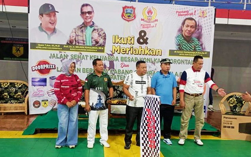 60DTK, Kabupaten Gorontalo – Komite Olahraga Nasional Indonesia (KONI) Kabupaten Gorontalo menggelar kegiatan jalan sehat dan latihan bersama cabang olahraga bela diri, Minggu (13/11/2022).