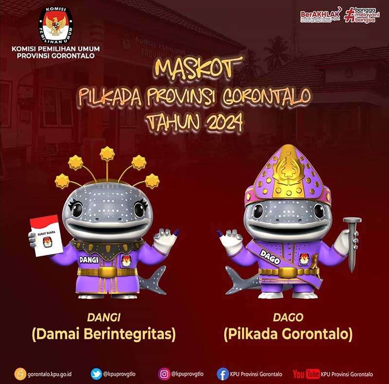 Pasangan hiu paus bernama Dago (Pilkada Gorontalo) dan Dangi (Damai Berintegritas) itu disampaikan oleh pihak KPU Provinsi Gorontalo pada kegiatan media gathering, setelah menerima kritikan dan masukan dari masyarakat dan penggiat pemilu, Senin (20/05/2024).
