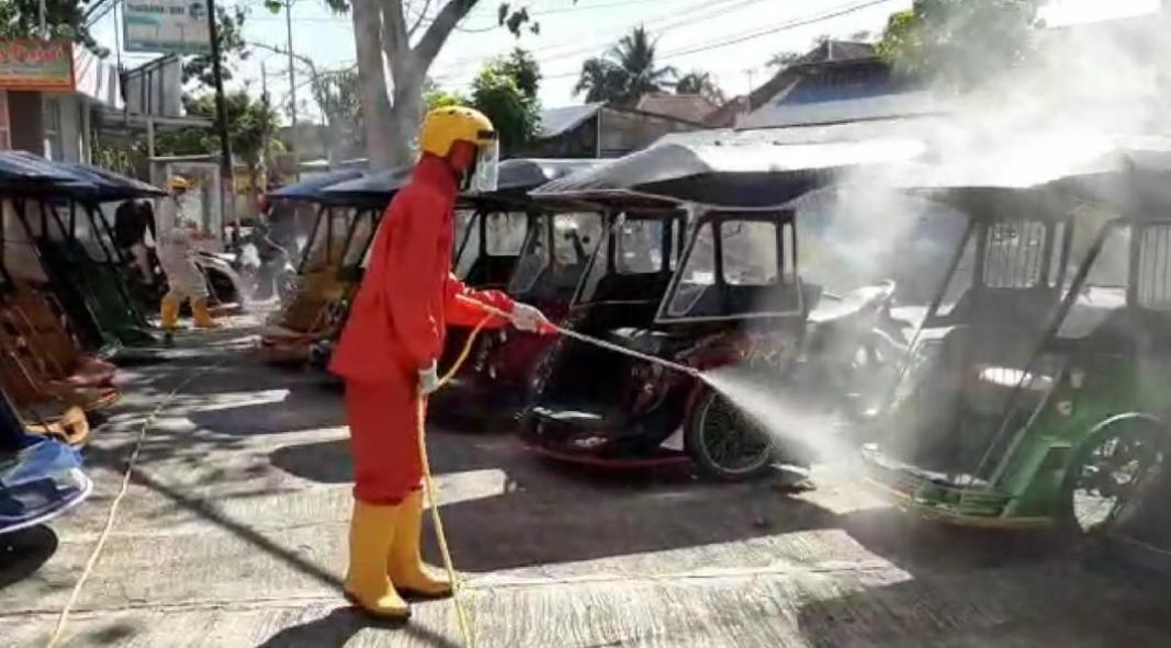Penyemprotan yang diketahui bekerjasama dengan Dinas Perhubungan (Dishub) Provinsi Gorontalo, PMI Provinsi, dan aplikator ojek online, yang dilaksanakan di pangkalan bentor, Jalan Agussalim, Kota Gorontalo.