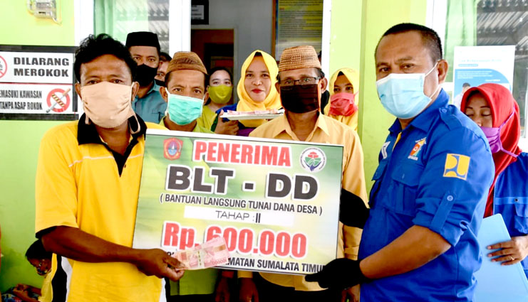 60DTK, Gorontalo Utara – Sekretaris Daerah (Sekda) Gorut, Ridwan Yasin, kembali menyalurkan Bantuan Langsung Tunai (BLT) kepada 92 Kepala Keluarga (KK) di Desa Keluwoka, Kecamatan Sumalata Timur, Kamis (18/06/2020).