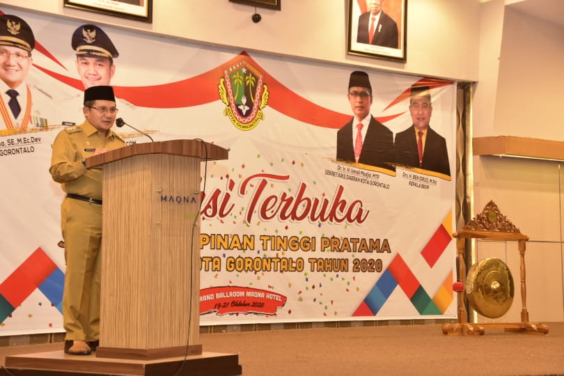 Wali Kota Gorontalo, Marten Taha Pada Pembukaan Seleksi Terbuka dan Kompetitif Jabatan Pimpinan Tinggi (JPT) Pratama di Lingkungan Pemerintah Kota Gorontalo, di Hotel Magna, Senin (19/10/2020). Foto: Istimewa