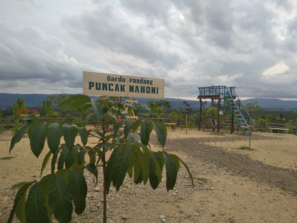 “dulu Bupati Kabgor juga pernah berkunjung, dan menyarankan kepada saya untuk memberi nama tempat ini. Saya langsung terpikir di Puncak Mahoni, karena banyak pohon Mahoni yang saya tanam diatas timbunan tersebut.”